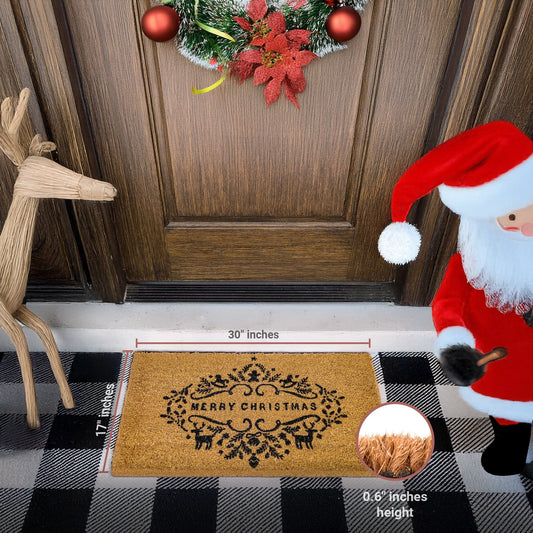 Christmas w/ Decoration Natural Coir Doormat