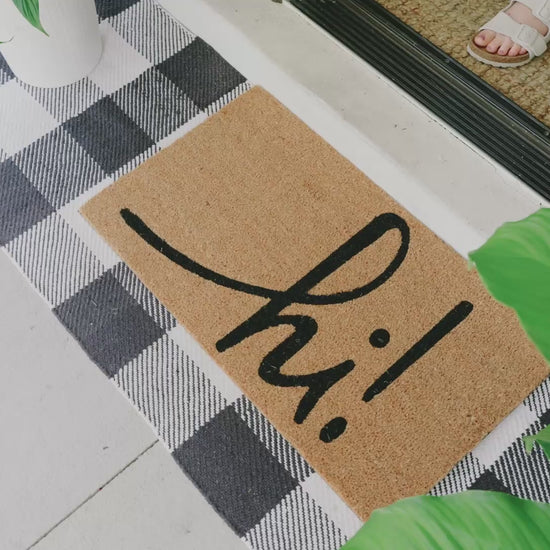 Make an upbeat statement with our Hi! doormat, featuring bold, oversized lettering that radiates cheer. Crafted from sturdy coir fibers, it effortlessly blends function with a modern, welcoming style. A playful yet practical addition to any front porch.