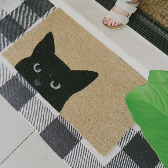 Make a stylish statement with this cool cat coir doormat. Featuring a bold feline in sunglasses, it blends playful design with durable coconut coir texture. Strong, weather-ready, and perfect for creating a laid-back yet polished welcome.